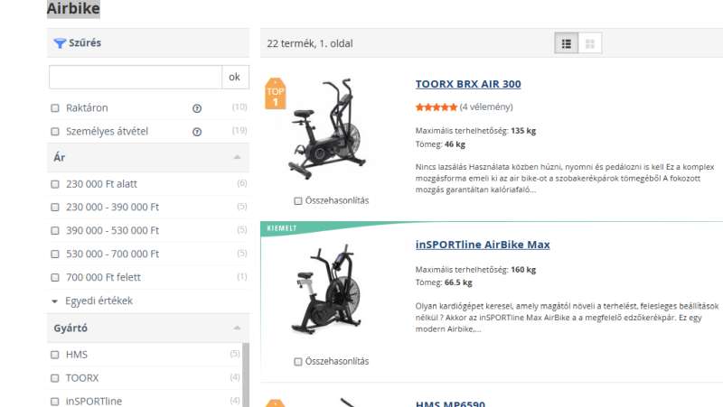 Az Árukereső.hu segít eligazodni a különböző márkák, típusok, extrák (pl. kijelző, pulzusmérő, edzésprogramok) és árak között, hogy valóban jó döntést hozz.
