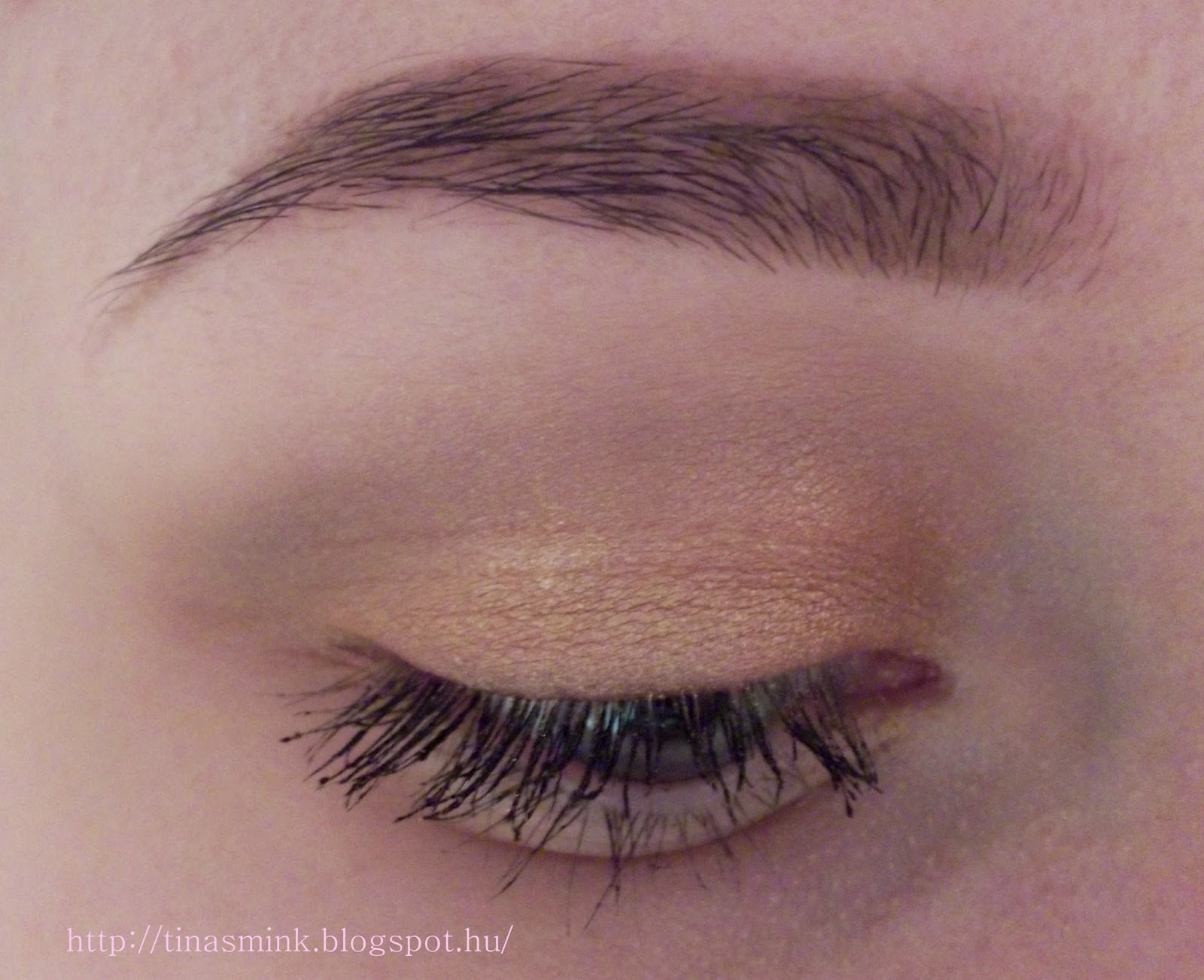 Az alapsmink amiből mindkettő kiindult: Lealapozott szemhéj, arany a mozgó szemhéjon, és szürke a mélyítővonalba.