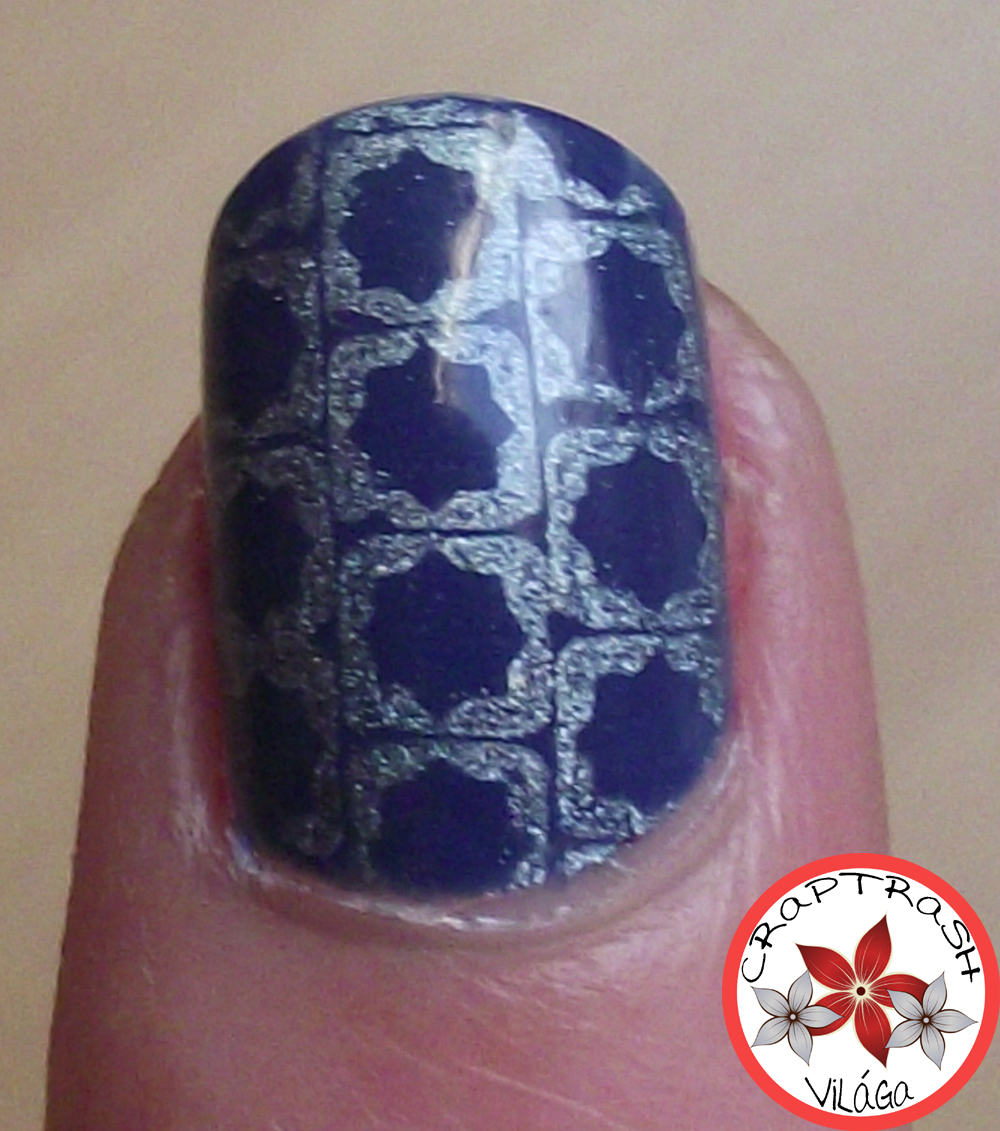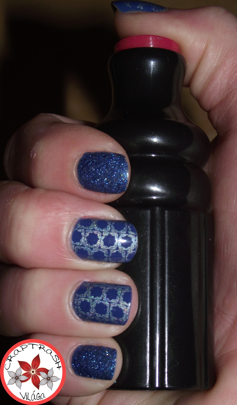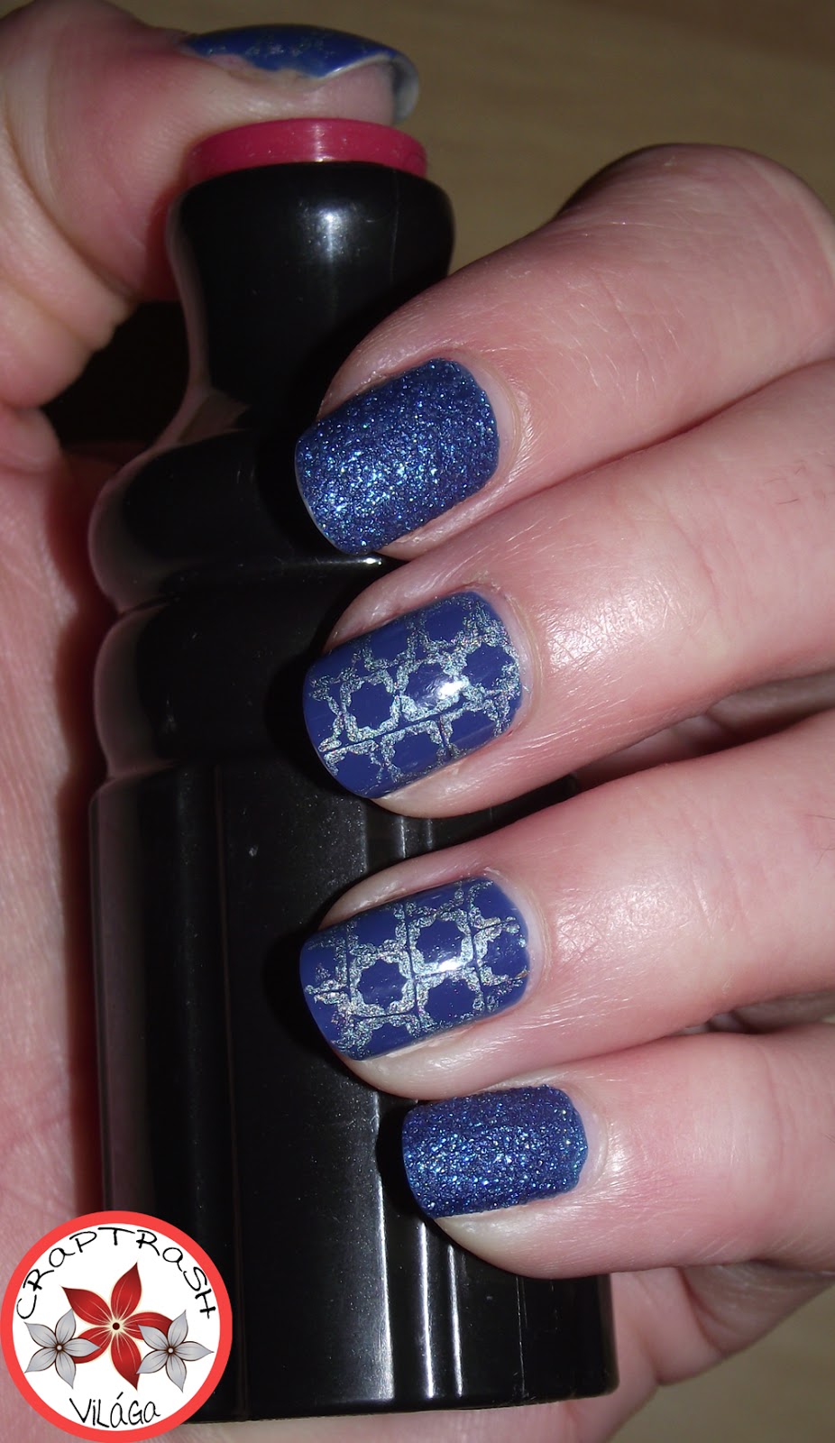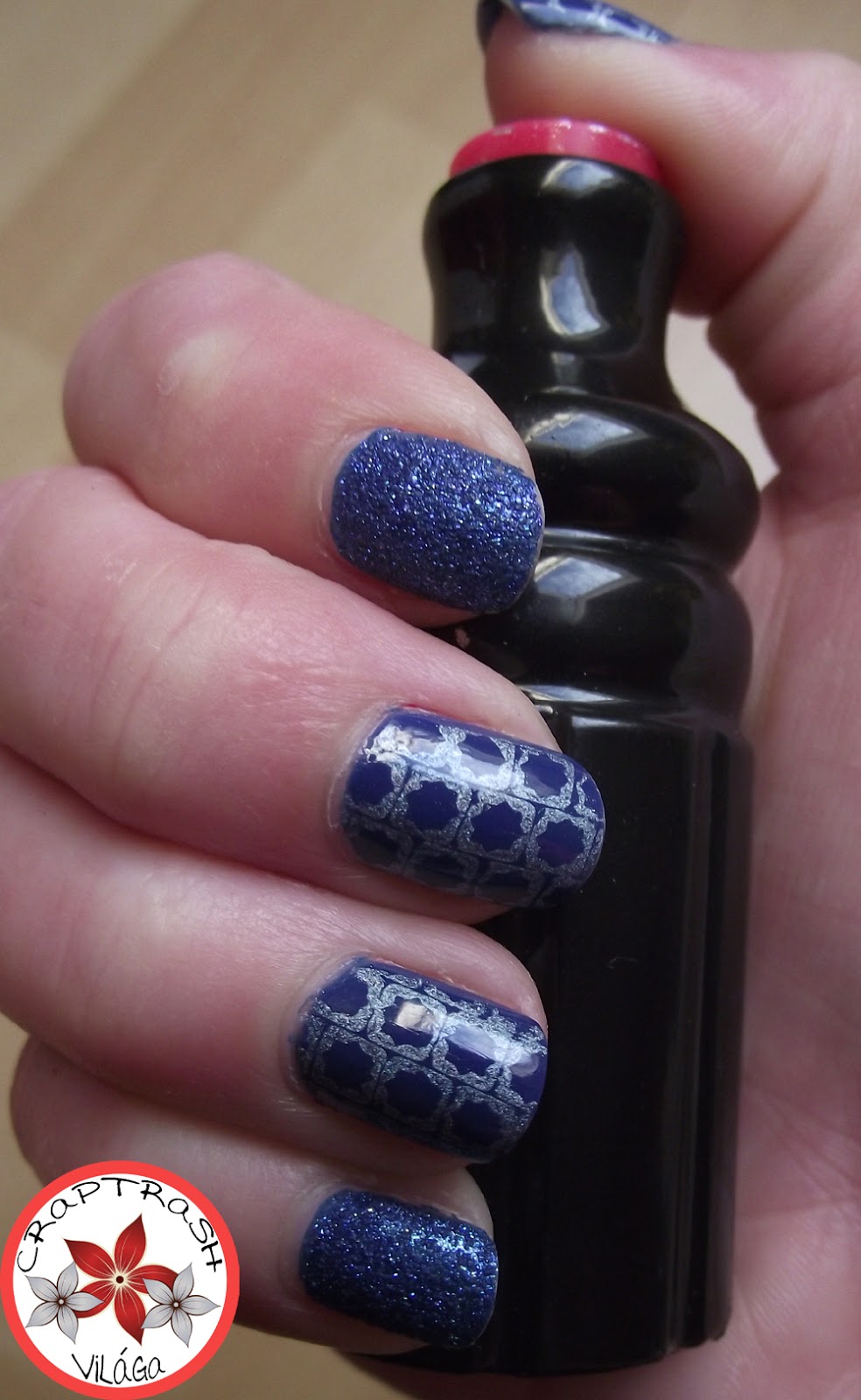 Újabb nyomdás manikűrt hoztam, mostanában megint nagyon rákattantam a kékre, és kicsit játszottam a textúrákkal is. :]