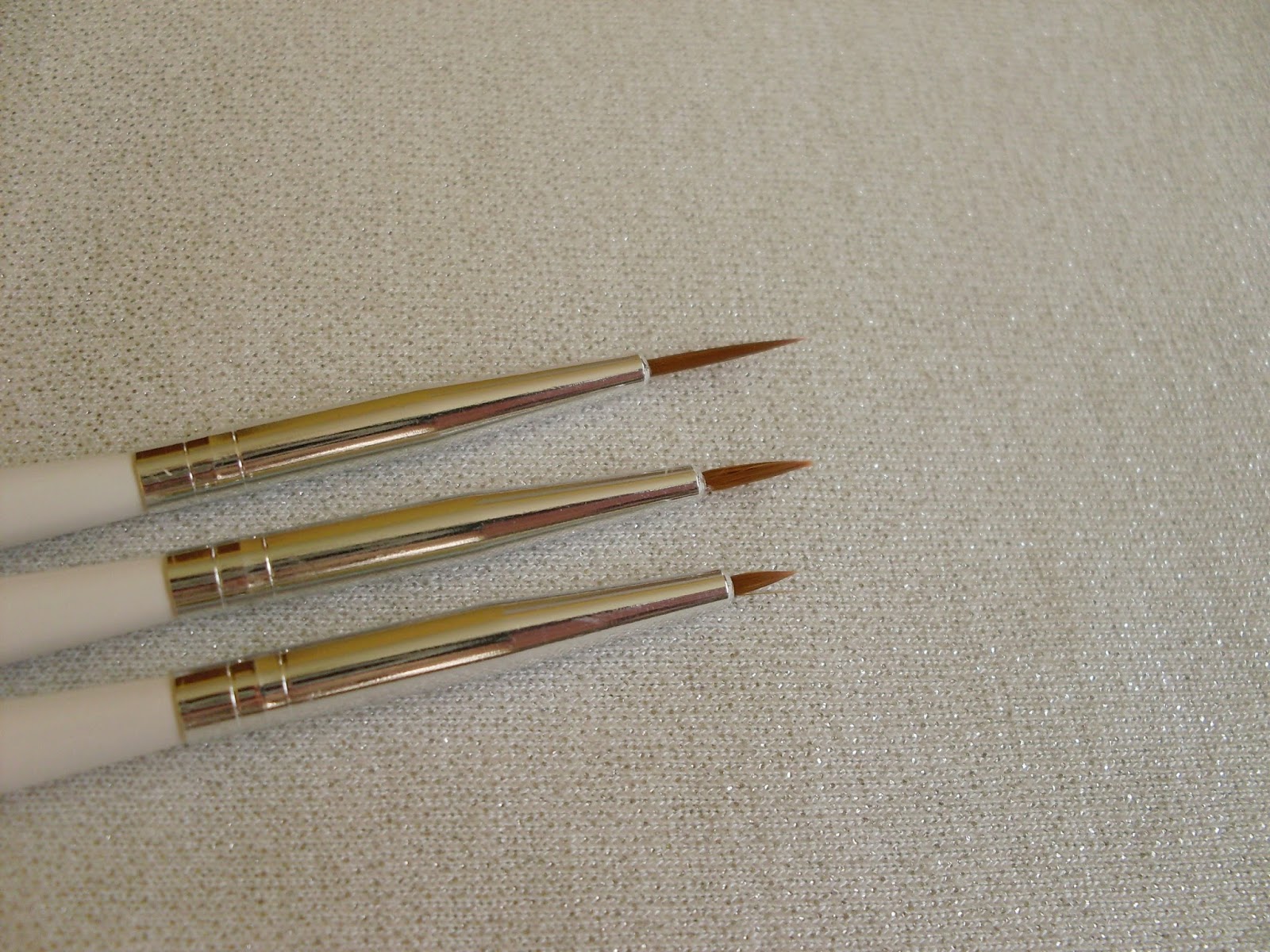 Először is egy 3 db-os ecsetkészletet választottam, melyeket körömdíszítéshez lehet használni. Egyszer már vettem egy ugyanilyen 3 db-os körömdíszítéshez használatos ecsetkészletet itt Szegeden (Kincses Szigetben), de azok sajnos nem igazán váltak be. Ezért most nagyon reménykedem abban, hogy ezekkel az ecsetekkel szép, vékony vonalakat tudok majd húzni!