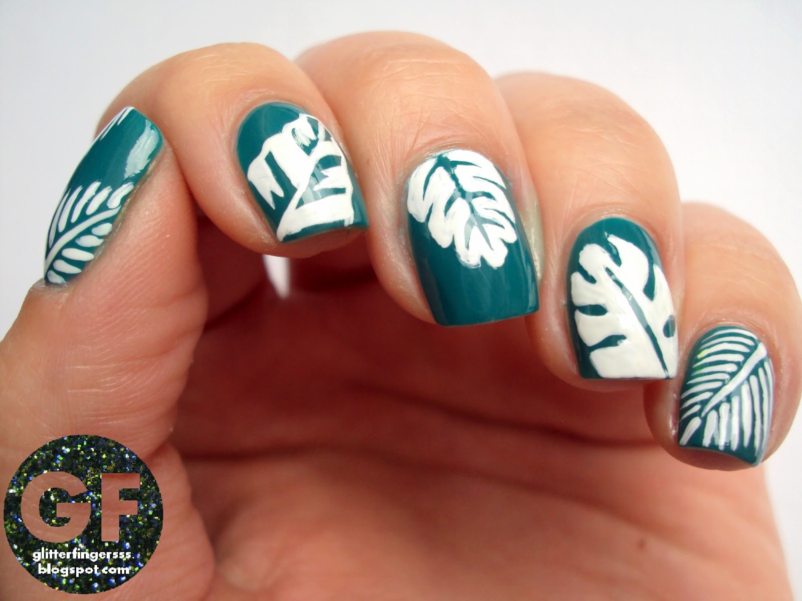 Mint ahogy említettem a tegnapi bejegyzésben is, a lakkról nekem a dzsungel jut eszembe, ezért innen merítettem az ihletet is. Először nem ilyen levél mintára gondoltam, de aztán rátaláltam EZEKRE a levelekre, és végül innen használtam fel párat a díszítésre.