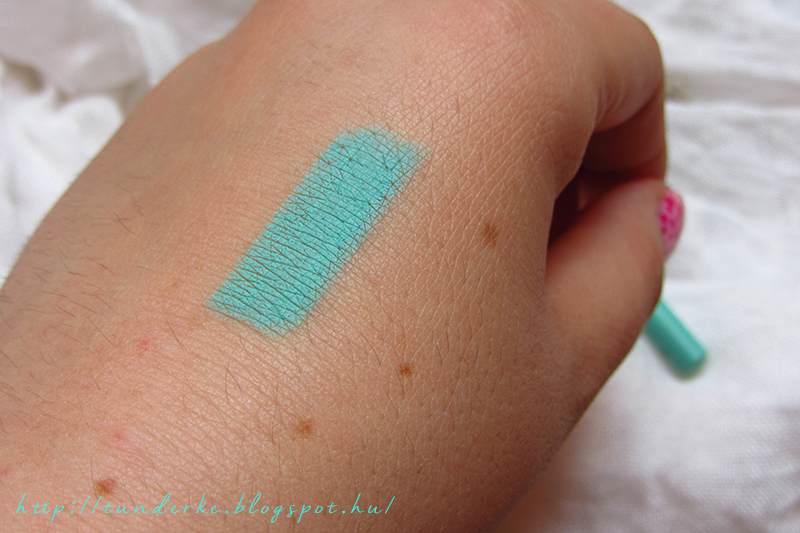 Külső: egy gyönyörű mentás türkiz szemceruza, amivel fantasztikus nyári sminket lehet rittyenteni pillanatok alatt. Egy egyszerű ceruzától van szó, a külső szín megegyezik a termék árnyalatával. Minden fontos információ fel van tüntetve a terméken amire csak szükségünk lehet.