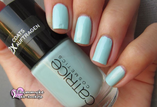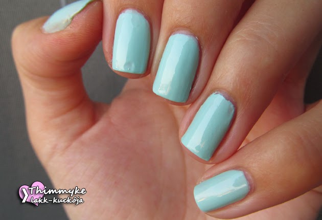 Alapnak a Catrice Am I Blue or Green lakkját használtam, ami egy csodás menta zöld? (vagy inkább kék?) lakk. Nekem nem sikerült eldöntenem… Egyszer úgy érzem kék, egyszer úgy, hogy zöld… (Mint a neve is mutatja… :D) Két rétegben szépen fed, átlagos idő alatt megszárad. Az állaga nekem picit fura, de meg lehet szokni.