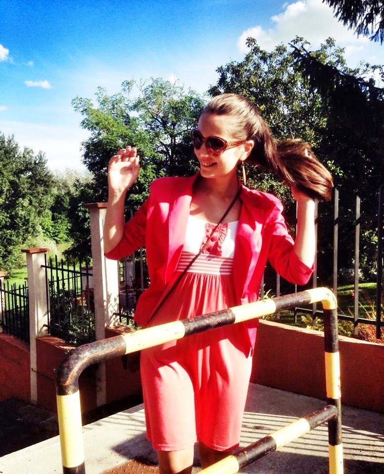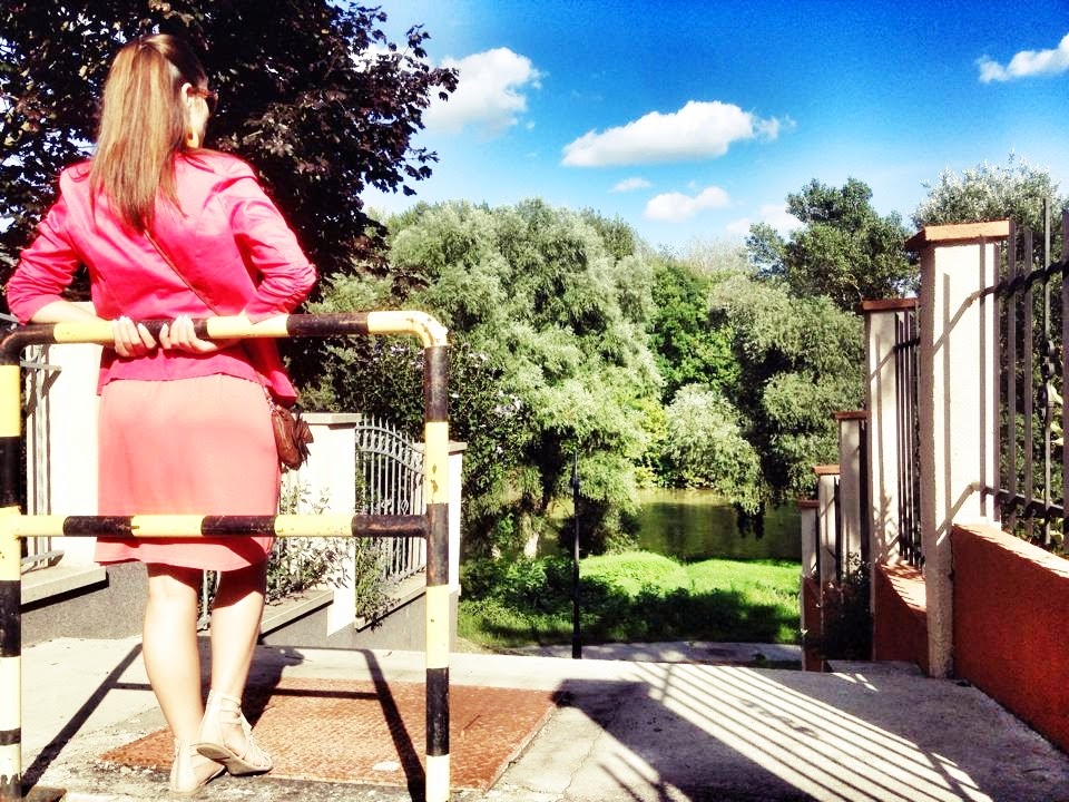 A következő outfit a korall szín bűvöletében jött létre, a fotókat pedig Rácalmáson készítettük, ami egy nagyon szép, Duna-parti városka, szeretem azt a környezetet.
