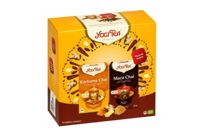A Yogi Tea Fűszerek varázsa bio tea szett két izgalmas és különleges fűszerkeveréket tartalmaz: a Maca Chai-t és a Kurkuma Chai-t.