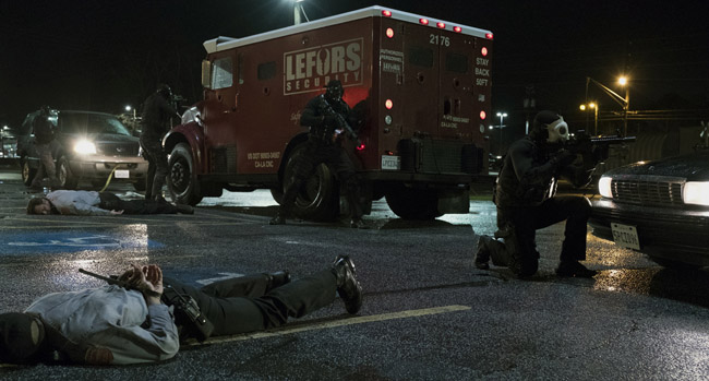A film azonnal egy rablógyilkossággal indít, mégpedig egy páncélautót rabolnak el, közben pedig jó pár biztonsági őrt és rendőrt hidegre tesznek, plusz az egyik támadó is a földön végzi.
