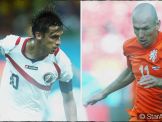 Nem várt párosítás a negyeddöntőben: Hollandia és Costa Rica megy birokra egymással a továbbjutásért szombat este a világbajnokságon, Salvadorban. Argentína páholyból figyelheti, ki lesz a riválisa. Nigel de Jong sérülést miatt, a másik oldalon Oscar Duarte eltiltás miatt hiányzik. Kövesd élőben a fejleményeket velünk! A teljes cikkért KLIKK!