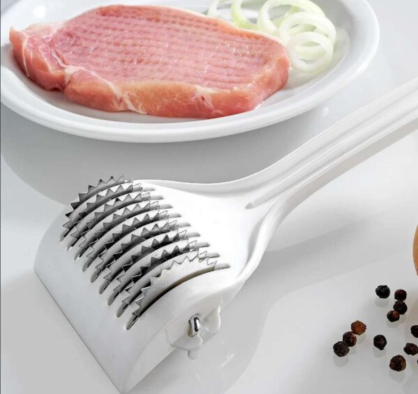 A praktikus húsrostlazító segítségével a hússzeletek igazán puhák és zsengék lesznek. Éles, fűrészes pengéi mélyen behatolnak a hús szövetébe, lazítják a rostokat, így biztosítva a gyorsabb pácolást és egyenletes sütést. Az eredmény? Szaftos és ízletes hús, amely szinte elolvad a szádban.