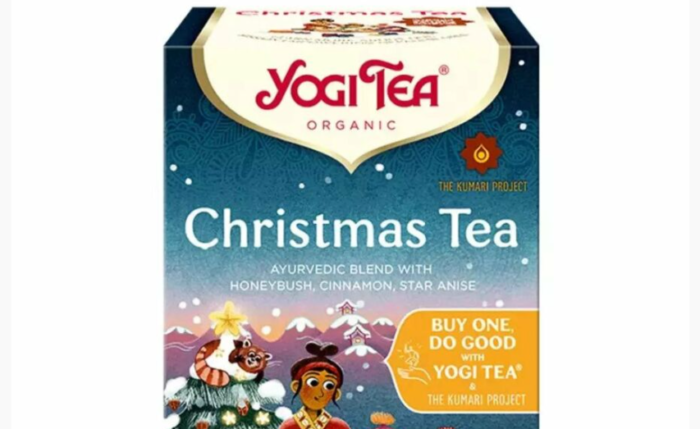 A Yogi Tea Karácsonyi bio tea egy ajurvédikus gyógynövény- és fűszerkeverék, amely mézbokorral, fahéjjal, csillagánizzsal és egyéb összetevőkkel készül.