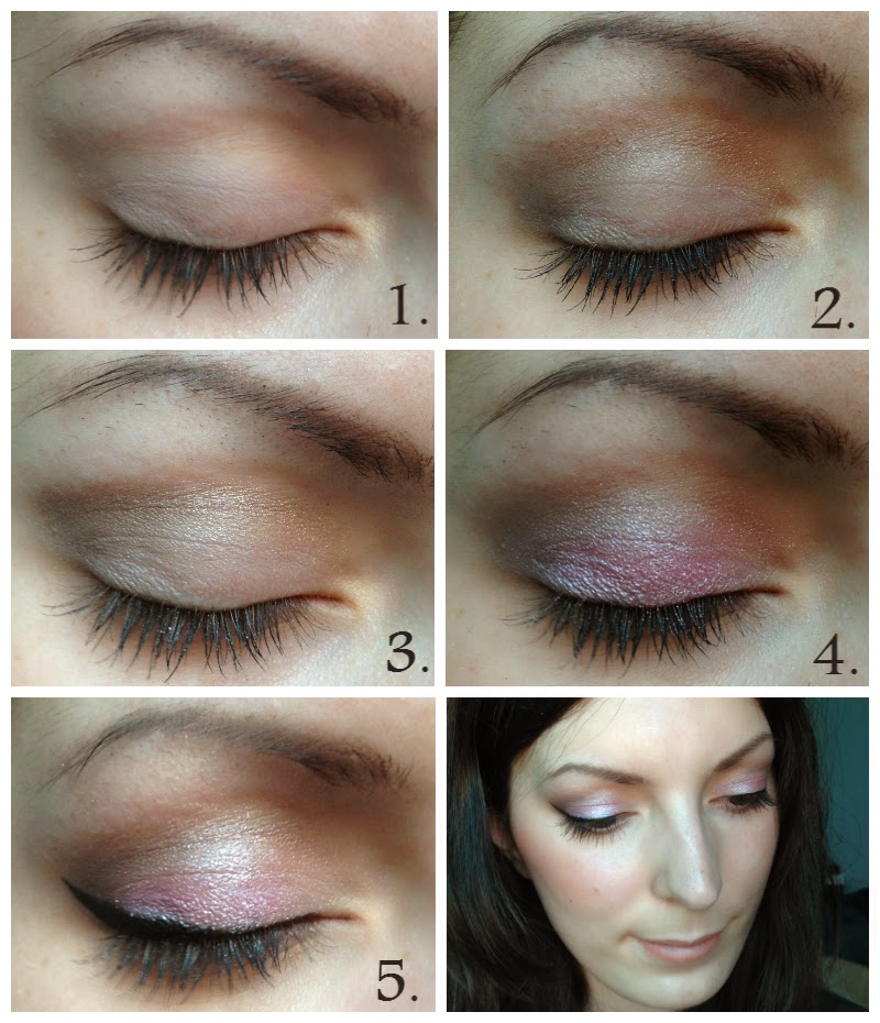 1. lépés: a szemhéjamat lealapoztam, majd a Lovely palettájából balról a 4. matt színt felvittem a teljes szemhéjamra. Ezt a színt ecsettel és kézzel is nyugodtan felvihetitek.