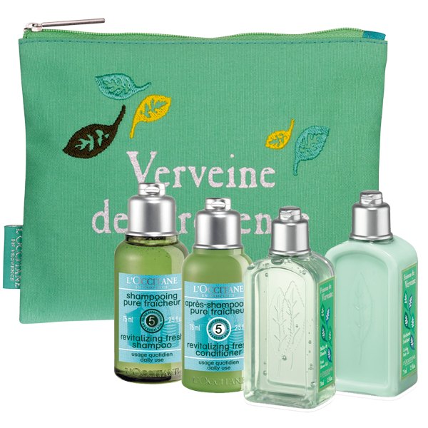 A csomag tartalma:Aromás Verbéna tusfürdő és testápoló 75 – 75 ml, Revitalizáló sampon és kondicionáló 75- 75 ml, 2 db Angelika arcápoló minta, mindez egy neszeszerben.