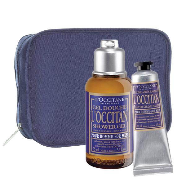 A szett tartalma: L’Occitan after shave balzsam 30ml, L’Occitan tusfürdő 75ml és egy neszeszer
