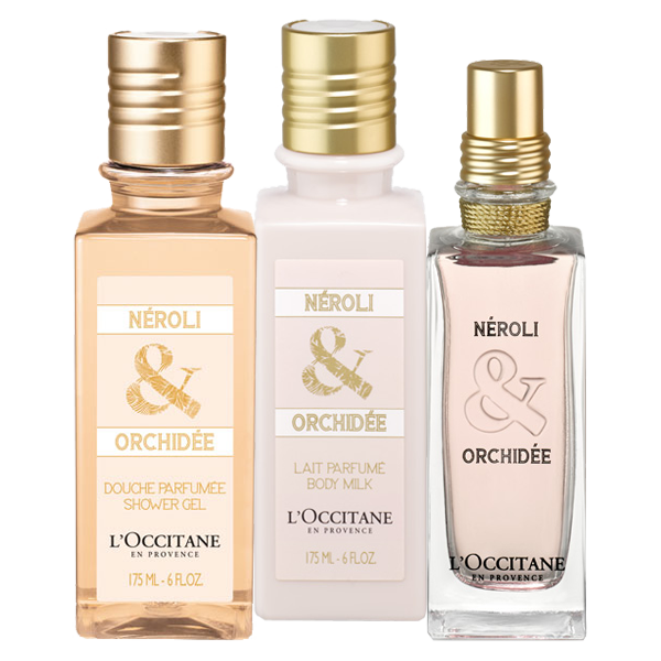 A szett tartalma: Neroli & Orchidea EDT 75 ml, Tusfürdő 175 ml, Testápolótej 175 ml.