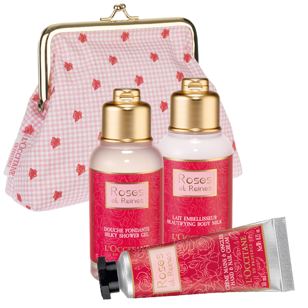 Készüljön a nyári utazásokra a csodálatos Rózsa miniszettel. Egy friss és bársonyos illat, ami a virágok királynőjét ünnepli.A szett tartalma: Rose et Reines testápolótej 75 ml, Tusfürdő 75 ml, Kéz- és körömápoló krém 10 ml, mindez egy neszeszerben.