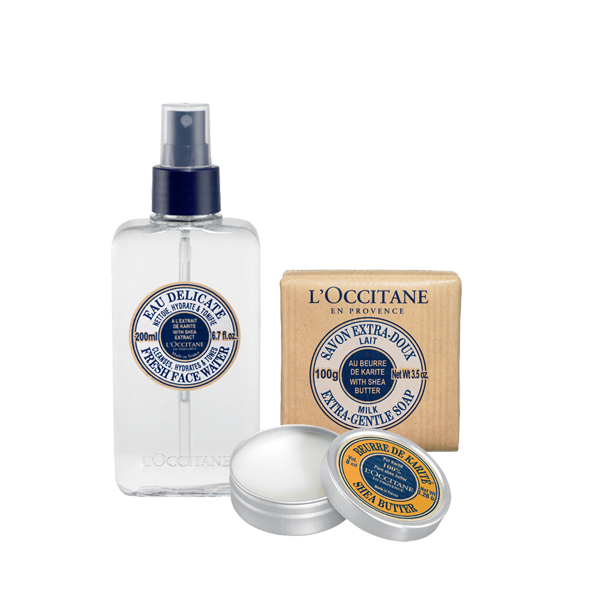 A Shea Vaj a L’OCCITANE egyik legismertebb összetevője. A shea vaj számos jótékony hatással bír: védelmezi, táplálja, megnyugtatja, meggyógyítja és regenerálja a bőrt. A szett tartalma: Fresh Face Water 200ml Pure Shea Butter 8ml Shea Milk Soap 100g