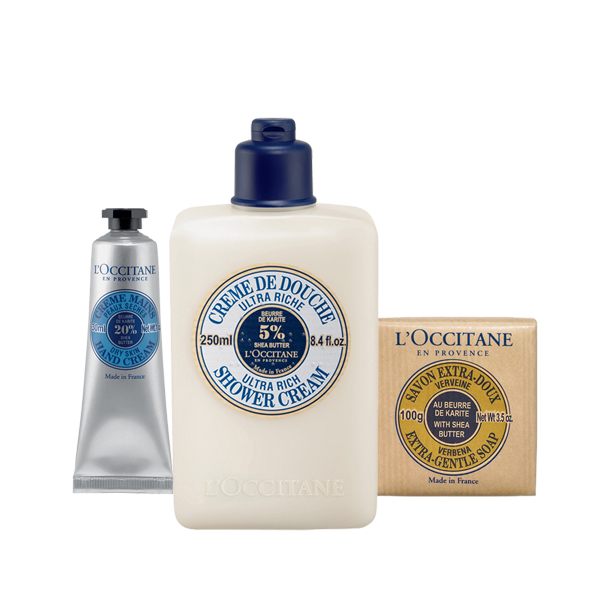 A She Vaj a L’OCCITANE egyik legismertebb összetevője. A shea vaj számos jótékony hatással bír: védelmezi, táplálja, megnyugtatja, meggyógyítja és regenerálja a bőrt.A szett tartalma:Ultra Rich Shower Cream 250mlShea Hand Cream 30mlShea Soap Verbena 100g