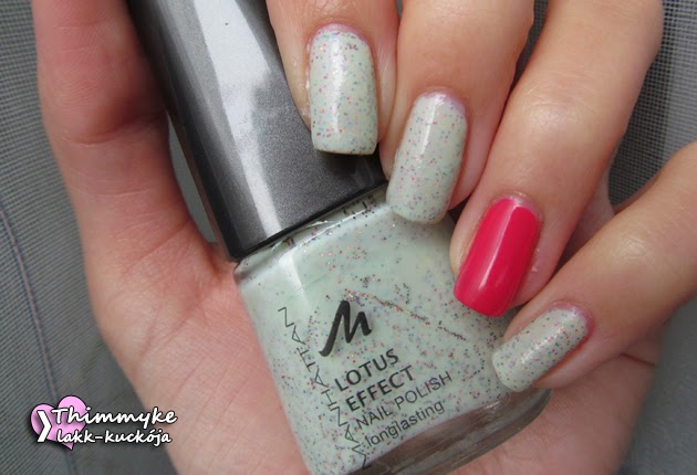 Szemeztem már egy ideje a Manhattan színes mákos lakkjával, aztán végül a glamour napokon akciósan + kuponnal elhoztam. A lakk piszkosfehér, zöldes színű, ebben úszkálnak a színes pici csillámok. Két rétegben tökéletesen fed pedig nagyon tartottam tőle, hogy sok réteg kell majd belőle… A száradása átlagos, viszont fedőlakkot nekem igényelt, hogy szép fényes legyen.