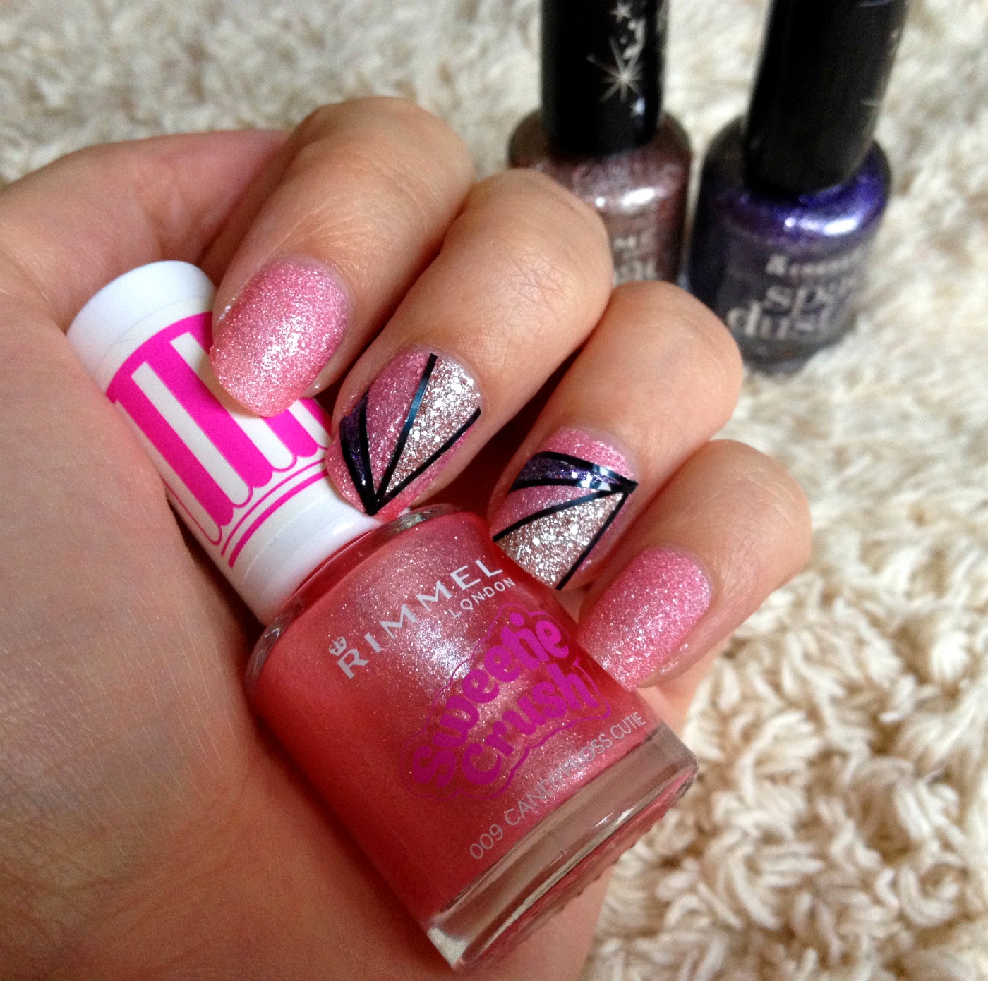 Ma egy olyan manikűrt mutatok meg nektek, amelyekben homoklakkokat használtam. Ezt a manit konkrétan a Rimmel Fess és Nyerj! nyereményjátékára készítettem. A feladat az volt, hogy egy manikűrt kell készíteni Rimmel lakkokkal. Okozott egy kis fejtörést, hogy két Space Dust homoklakkból mit lehet alkotni. Így gondoltam beszerzek még egy lakkot hozzá. Egyszerű lakkot szerettem volna, de nem tetszett egyik szín sem igazán, így maradtam az új Sweetie Crush lakkoknál.(