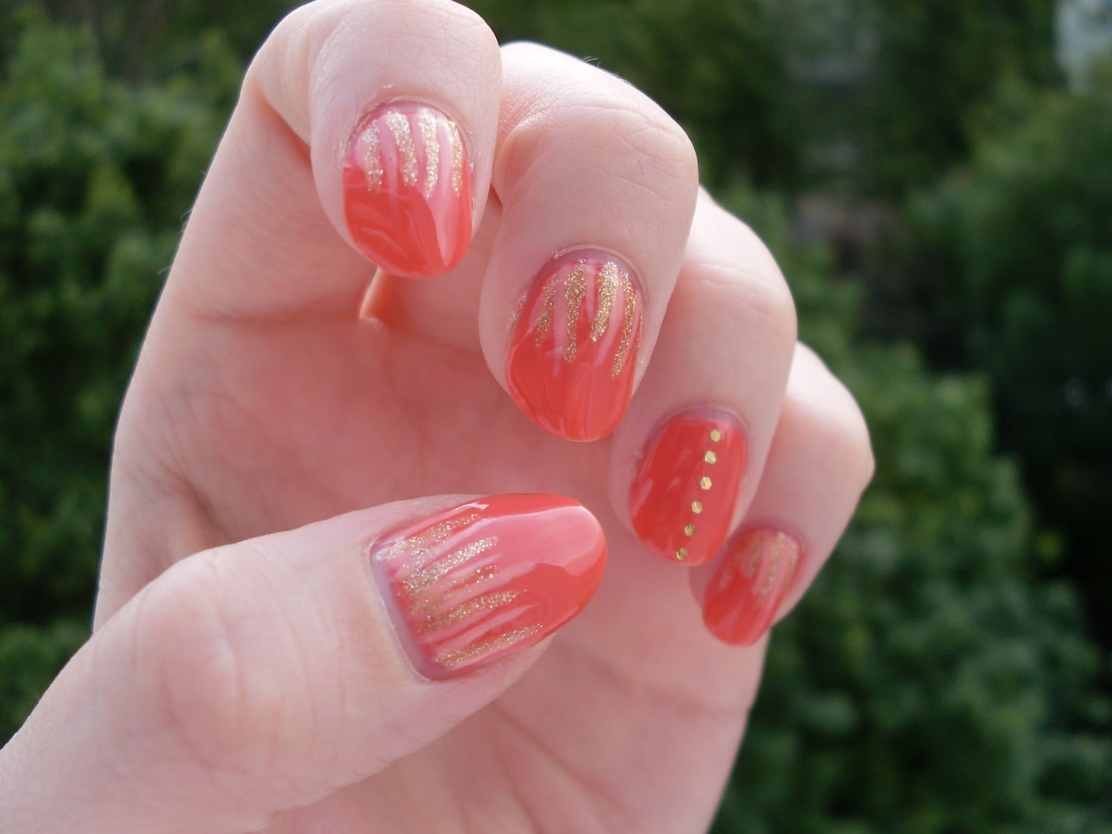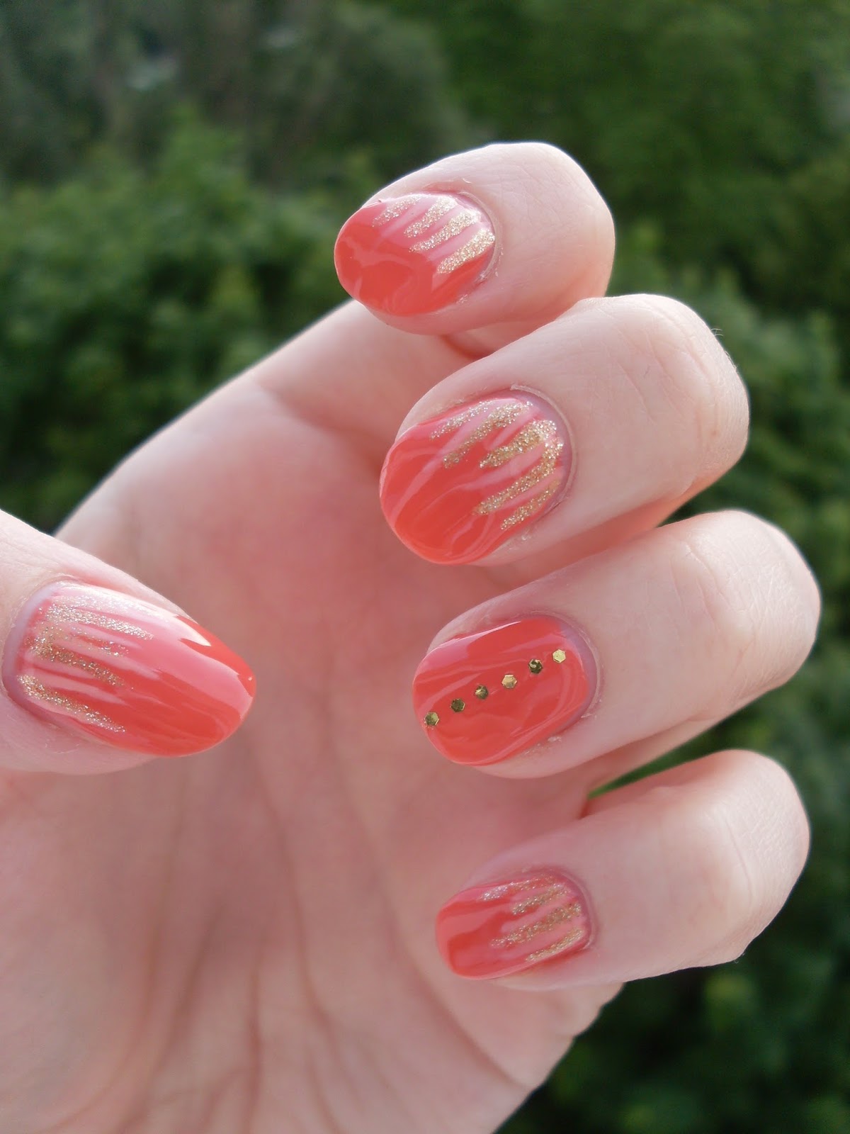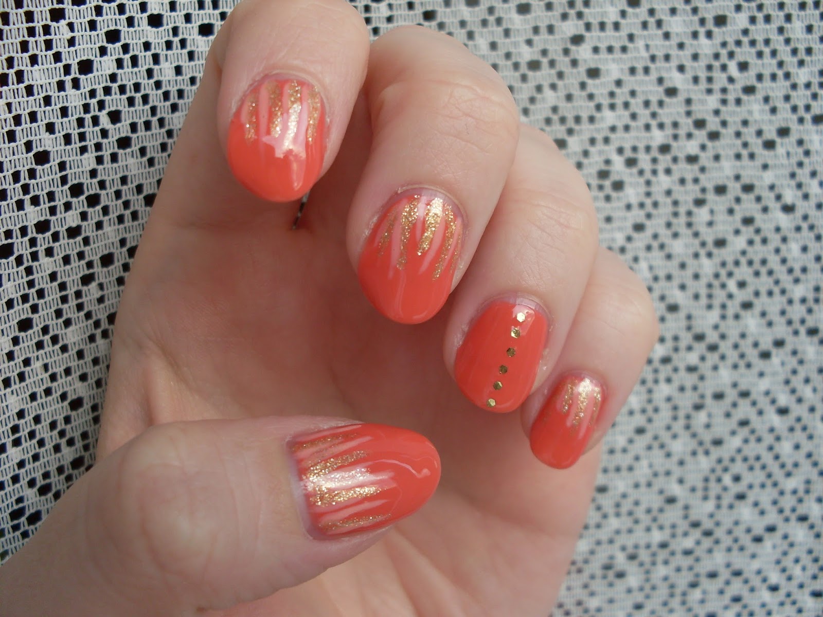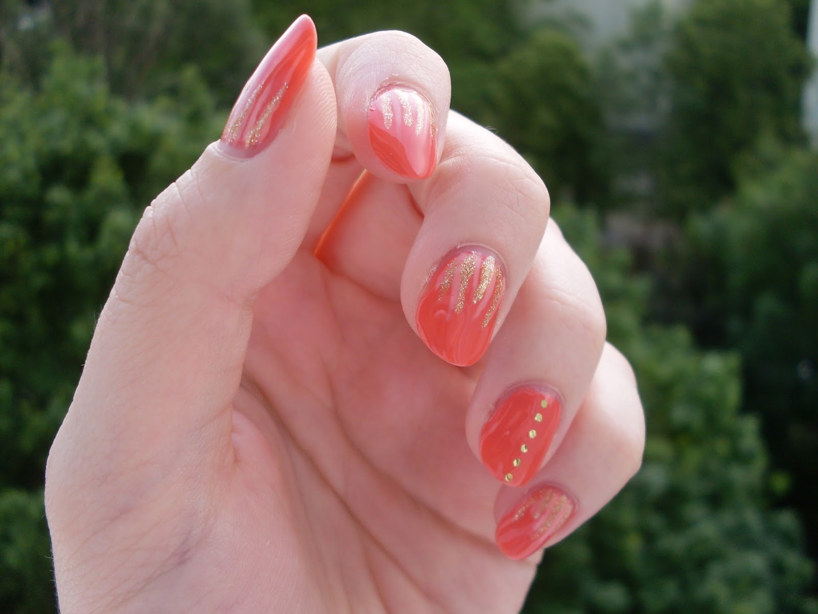 Egy jóval nyáriasabb színvilágra váltottam át: az alapul választott, barackos-korall színre arannyal és halvány barackkal festettem fel a vonalakat, méghozzá az új, Born Pretty Store ecseteimmel. Azt kell mondjam, tetszenek ezek az ecsetek, mert elsőre egészen vékonyak vonalakat sikerült festenem velük – A teljes cikkért KLIKK!