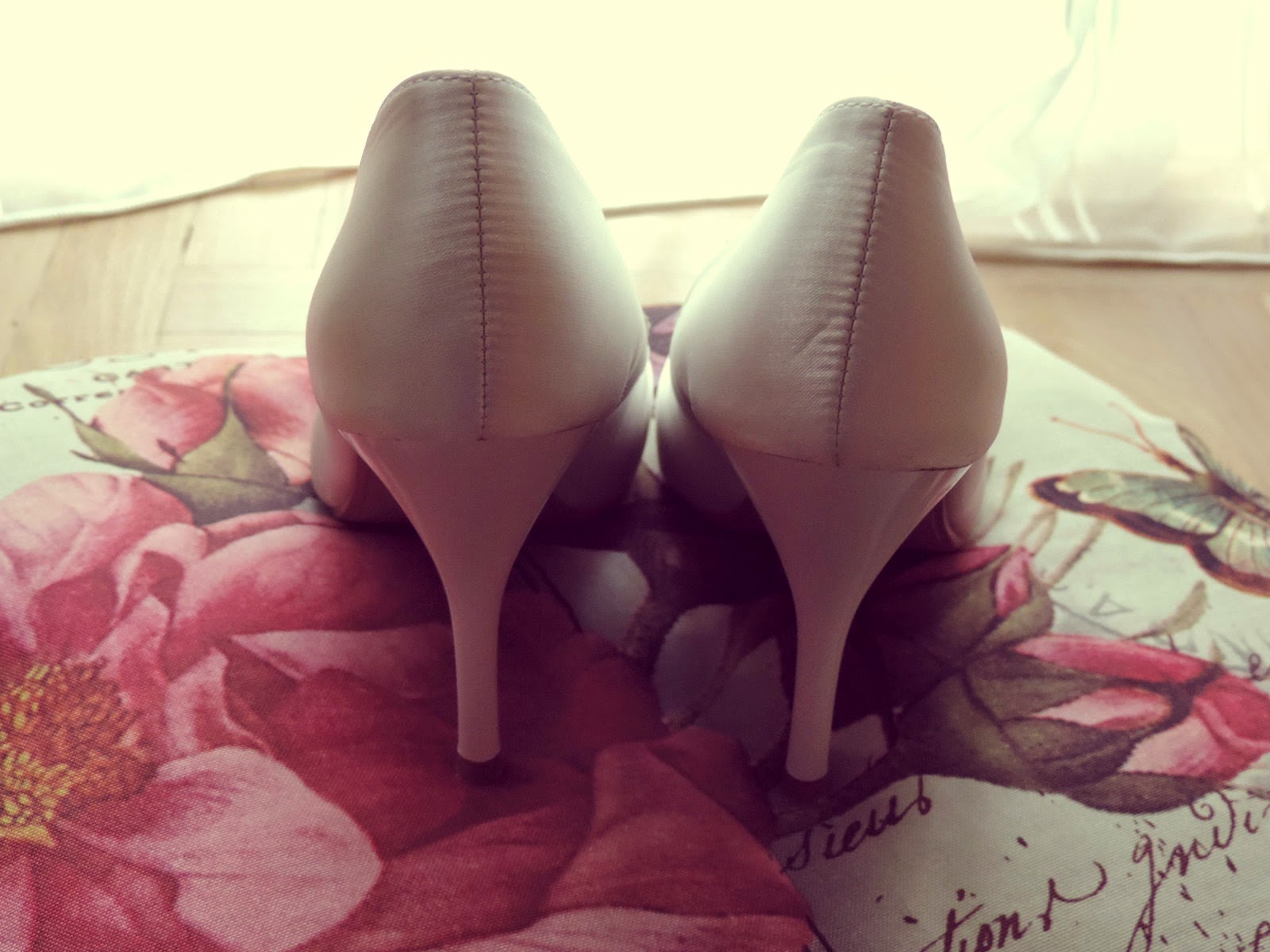 Ezt az első szatén magassarkút a ceremóniára vásároltam, miután kiderült, hogy a nyitott orrú fazon nem mutat úgy a ruhával, ahogyan én az elképzeltem. 3000 Ft-ot költöttem rá és teljesen véletlenül találtam meg, a Duna Pláza egyik alagsori cipőboltjában. Mellesleg ez volt az utolsó darab, így nagy szerencsém is volt a vásárlással. Ezzel a cipővel nagyszabású terveim vannak, amit hamarosan Nektek is megmutatok majd! 😉