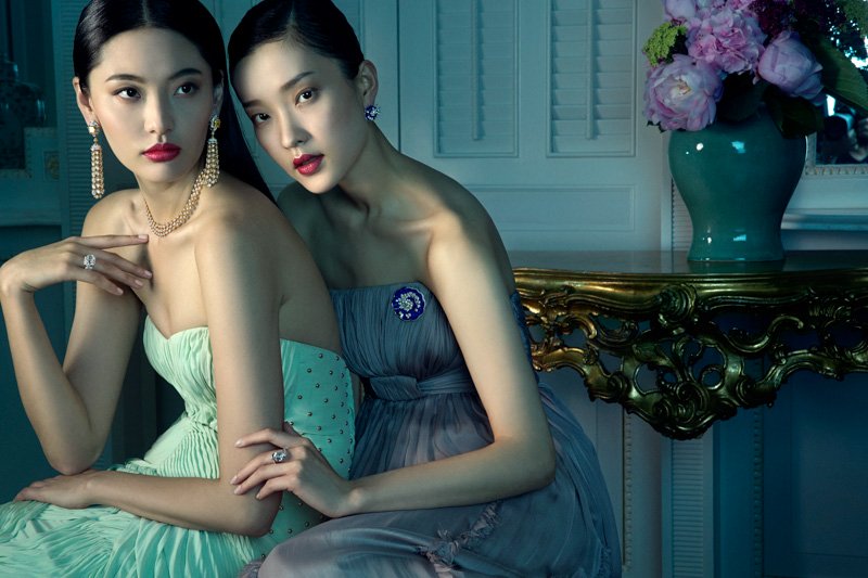 Van Cleef & Arpels csodák ezek, melyek két kínai modellen láthatóak. Hiába, úgy tűnik, arra van a piac. Ez a Pierres de Caractére koll,ekció, tavaszra-nyárra. Még nem tudjuk, hová viselnénk ezeket, egy biztos, talán valami előkelő hárfa koncertre. (Megyünk mi olyanra valaha?) Te melyik milliós csodát tudnád a magadénak?