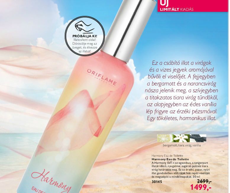Nagyon örülök, hogy egyre több elérhető árú parfüm kerül az Oriflame kínálatába. Nyilvánvalóan az illatuk nem tart olyan sokáig, de nálam nyáron amúgyis inkább a frissesség a szempont, és a Harmony szerintem egy nagyon kellemes, nőies illat.