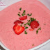 Miután tányérba mertük, pár szem félbe vágott eperrel és apróra vágott citromfűvel díszítjük.