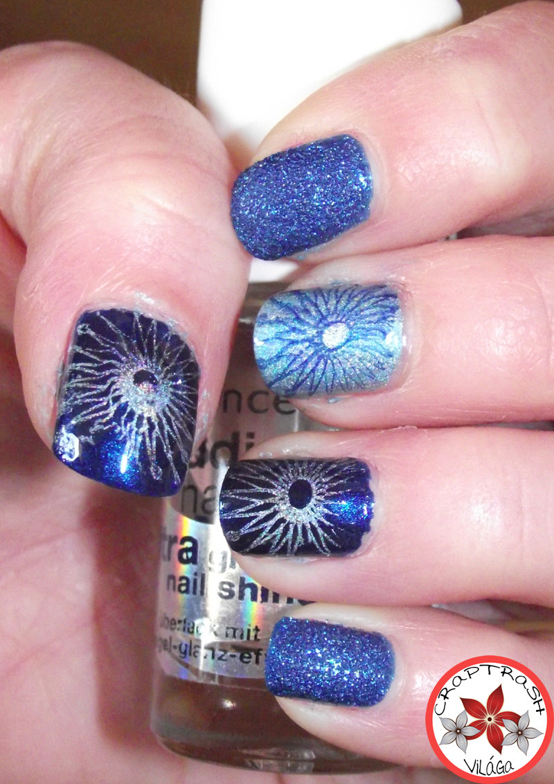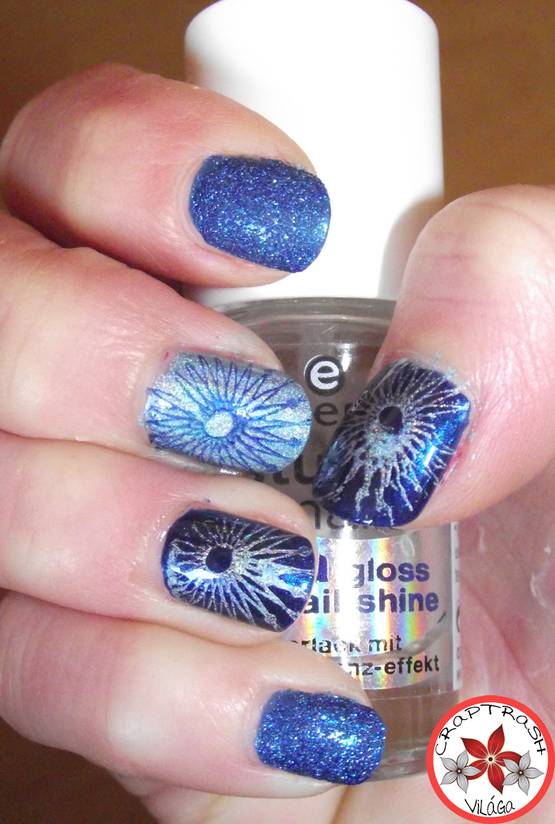 A kék vonalon indultam el, mert annyira bejött a Moyra Sand Effect 854-es lakk, hogy nem bírtam magammal, azt akartam először kipróbálni a CG lakk után. :]