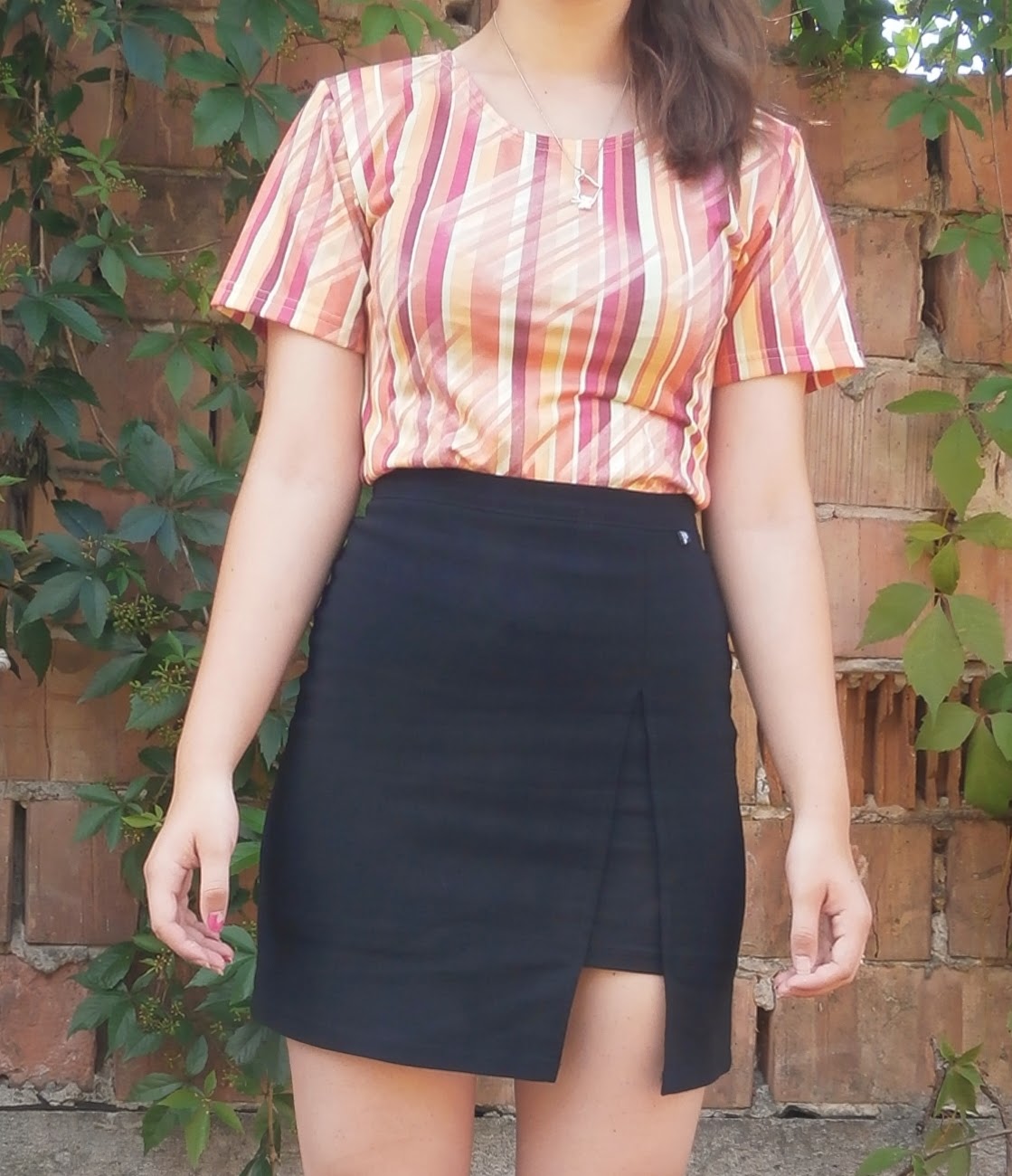 Biztos emlékeztek még a Blue w/ Black posztomra. Ott megígértem ,hogy a közeljövőben olyan szetteket mutatok be nektek , amikben anyukám által vart darabok szerepelnek. Főként blúzokat varrt / varr szóval, kb csak felsőket fogok viselni.:DD Most megmutatom nektek a következőt. Ezen a pólón mondhatni sok szín megtalálható, és egyben ez ( is ) teszi különlegessé. Másik pozitív dolog benne az , h függőlegesen találhatók rajta a csíkok, ezért optikailag lehet is vele csalni. Én fekete miniszoknyával , fekete magassarkúval, és egy szívecskés-virágos nyaklánccal kombináltam.