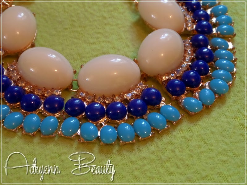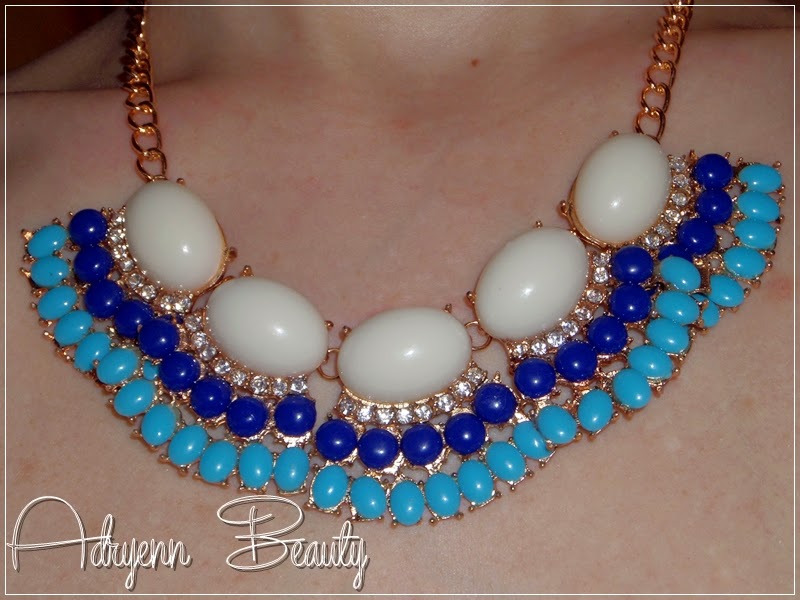 Hangsúlyos statement nyaklánc kék színben.