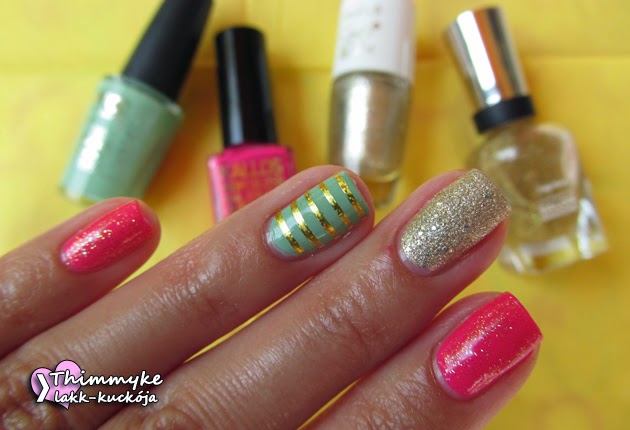 Angel nyári kihívásának első témája a kedvenc nyári szín. Természetesen mi más lehetne ez nálam mint a pink… E mellé került egy új kedvenc a menta, az arany meg csak úgy adta magát…. 🙂 Egyszerűen imádtam ezt a manikűrt a maga egyszerűségével és színeivel. 🙂