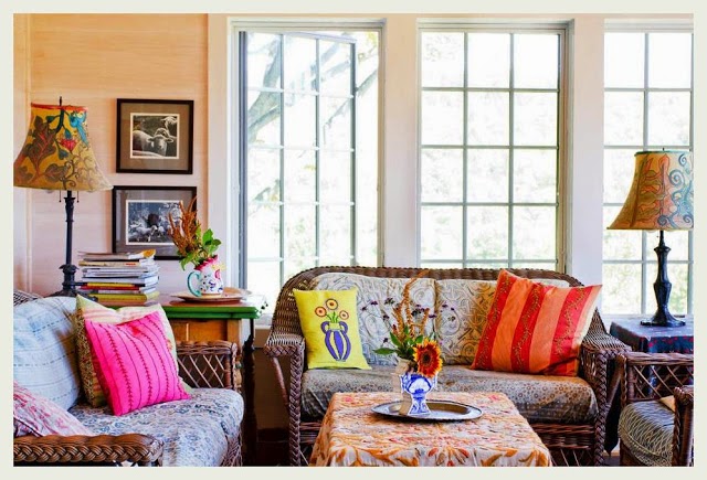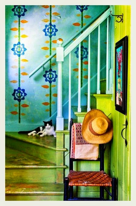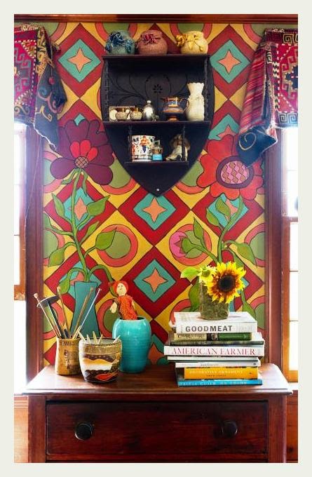 Egy ház, ami 1751-ben épült (USA, Massachusetts). Egy ház, mely eredetileg fehér és pasztell színekben “pompázott”. Egy ház, melynek tulajdonosa (művész és farmer egyben) sok évet töltött azzal, hogy a mostani színvilágot kialakítsa. A falak, a tapéta, a bútorok színe-mintája, a képek, a textilek, a lámpák mind-mind az ő keze munkája. Egy ház, mely nem “akar” trendi lenni, nem “akar” a legdivatosabb stílusirányzatoknak megfelelni, viszont minden szögletében eredeti, kreatív, szívet melengetően színes és barátságos.