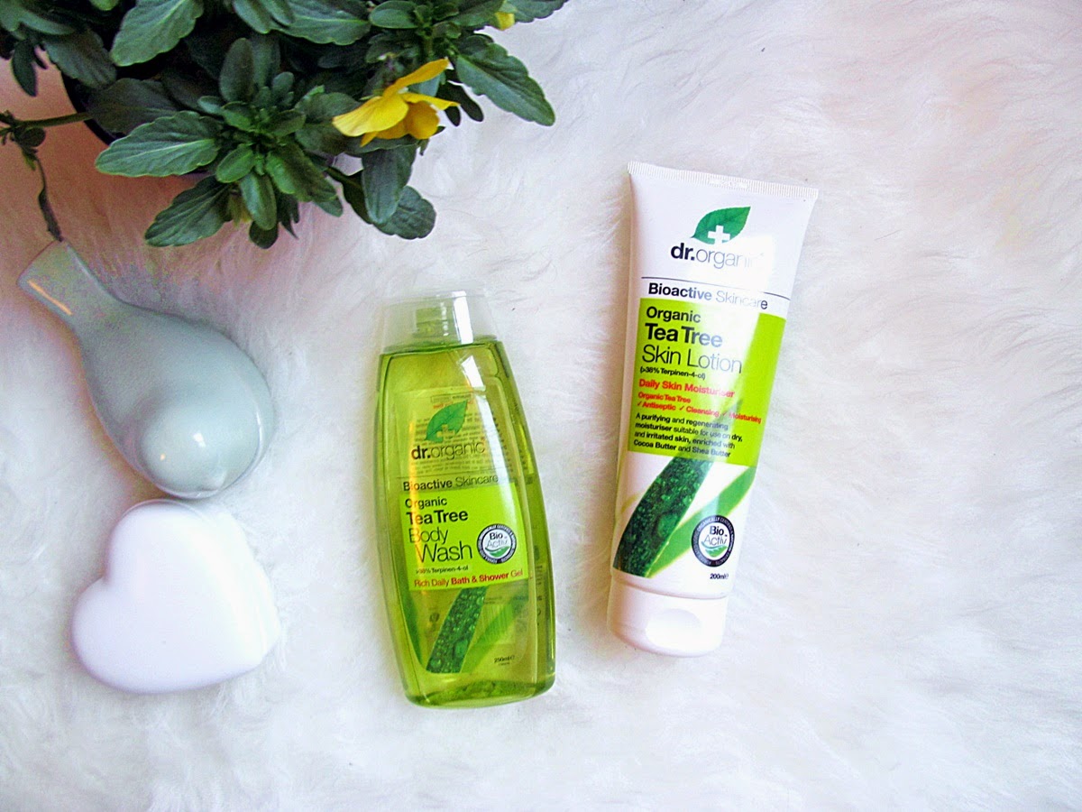 Az elmúlt hetekben több terméket is kaptam tesztelésre, többek között ezt az Dr. Organic teafaolajos tusfürdőt és testápolót. Korábban már próbáltam a tiszta teafaolajat, ami tényleg hatékony, de nem csodaszer, ahogy sokan emlegetik. Aki ismeri annak az illatát, az erre számítson ennél a két terméknél is, annyi különbséggel, hogy a tusfürdőbe egy kis mentolos illat is van.