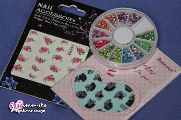 A mostani csomagba két vizes matricát és neon szegecseket választottam. Mind a három termék elnyerte a tetszésemet már már a csomag kibontásánál. (Ezúttal tényleg azt kaptam, amit kiválasztottam.) 🙂