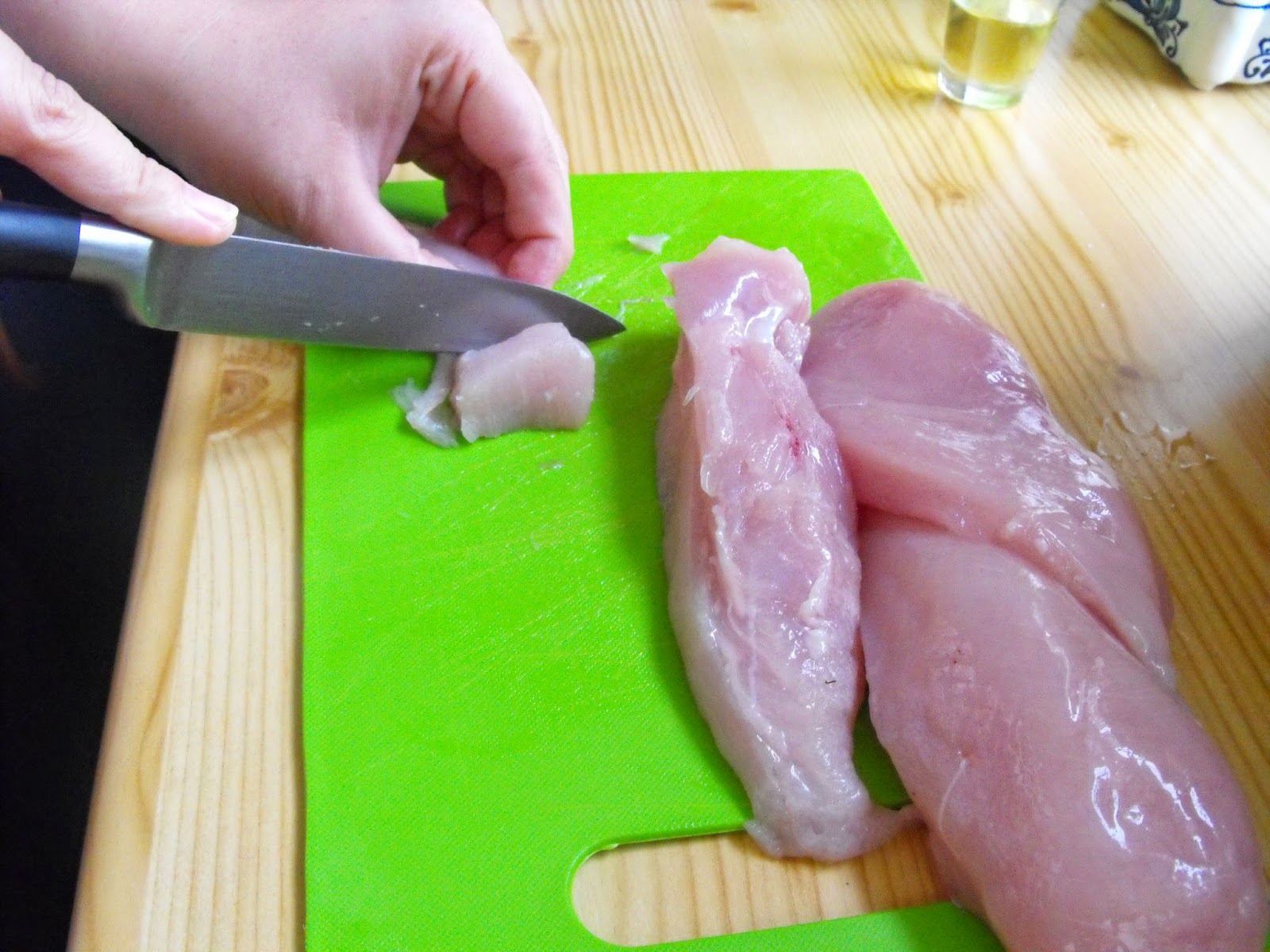 A csirkemellet felkockázzuk.